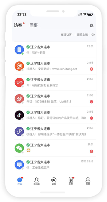 帮助企业连接客户,一个系统接待多渠道客户咨询,促进销售转化,帮助企业营销增长。